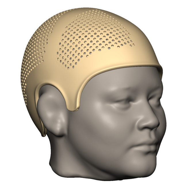 Mit dem Calibry-Scanner erfassen Sie den Kopf des Patienten und senden die 3D-Daten direkt an uns. Auf diesem Modell konstruieren wir einen Kopfschutzhelm, der genau auf Ihre Anforderungen abgestimmt ist. Der Helm wird anschließend in einem 3D-Druckverfahren - entweder im MJF-Verfahren aus PA11 oder im SAF-Verfahren aus PP - gefertigt. Er besteht aus einem praktischen Zweischalensystem, bei dem das Polster direkt im Helm eingedruckt ist.