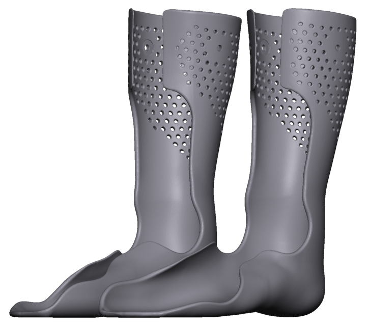 Wir konstruieren dynamische Unterschenkelorthesen oder Unterschenkel-Lagerungsorthesen nach Ihren Anforderungen und fertigen sie im SAF-Verfahren aus PP. Das Material lässt sich thermoplastisch verformen, kleben und schleifen – so können Sie die Orthese problemlos nachbearbeiten und anpassen.